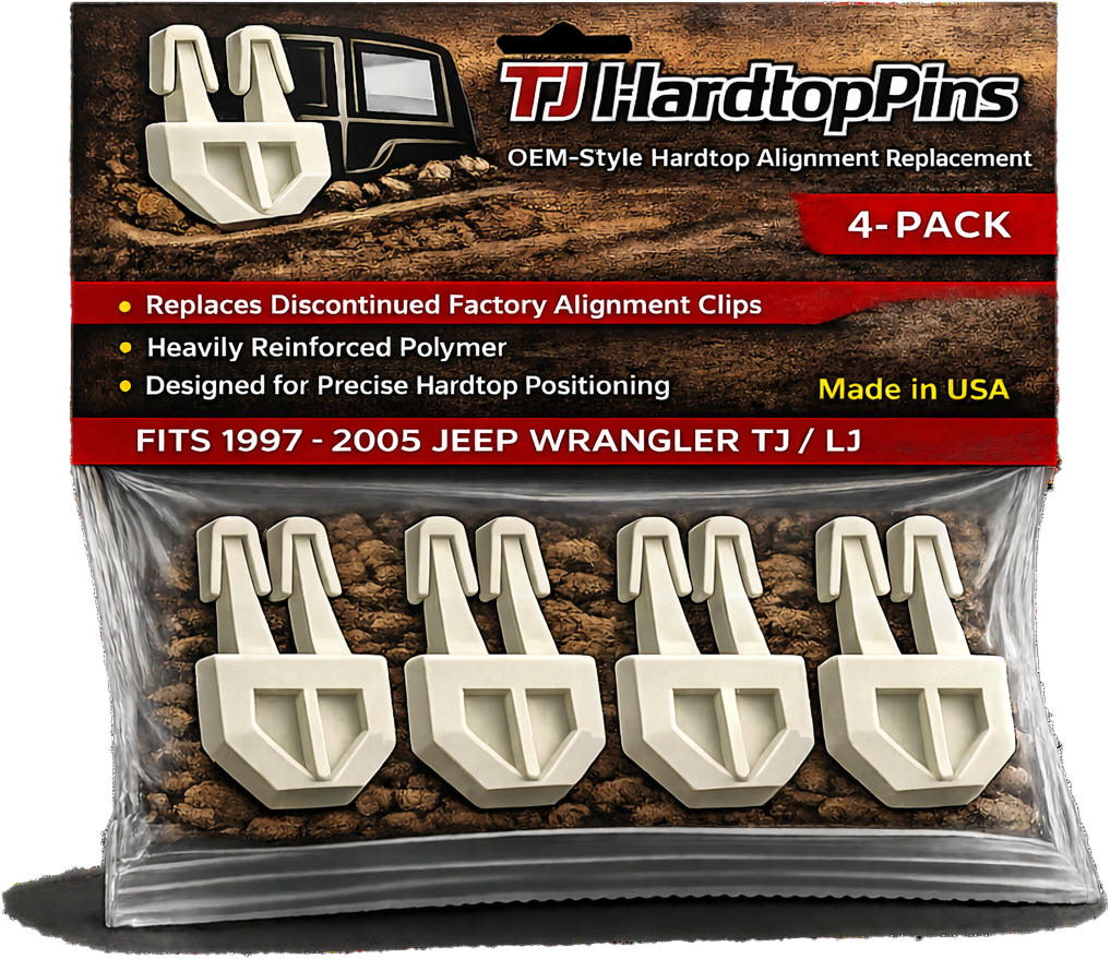 Fix broken or missing hardtop alignment pins. Make reinstalling your Wrangler hardtop fast and frustration-free.